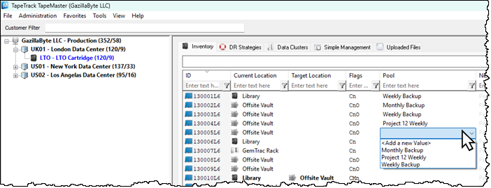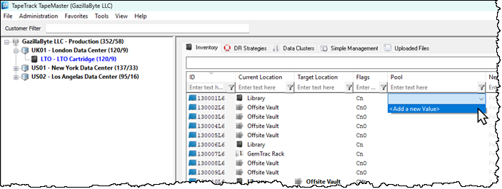 To add new values to a Volume, in the Inventory window, select the dropdown from the required Volume and select Add a new value