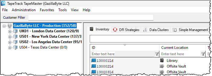 To filter Customer Tree insert a filter string in the Customer Filter