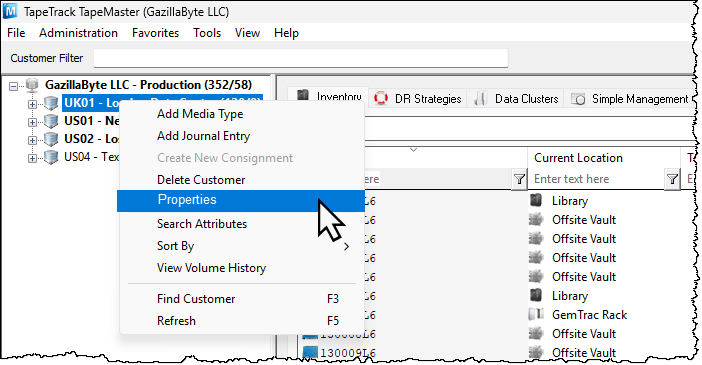 In the default media type view, the information is displayed in the hierarchy of Owner, Customer and Media types. Attribute view differs in the information is displayed in the hierarchy Owner, Customer, featured attribute/s separated into matching or unique values, media type and Repository or location.