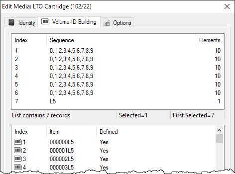From the Edit Media window, you can modify the description, change the media options and add volumes using the Volume-ID building tab.See the Volume-ID Building page for more details on how to use this function.
